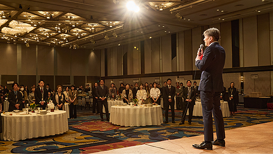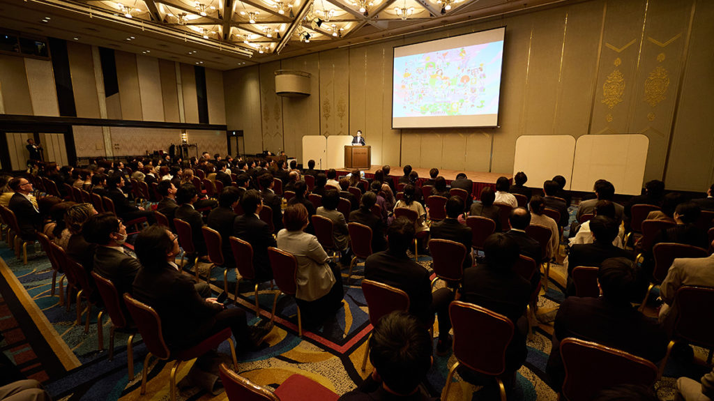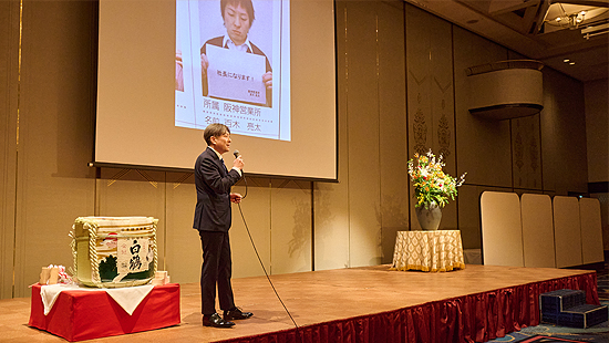 国内・海外の全社員、神戸ポートピアホテルに集合し、午前中は「2026年度 方針発表会」にて、今期の方針・戦略発表と、永年勤続表彰や、改善提案表彰などを執り行いました。午後からは、「創業20周年感謝の集い&百木新社長就任発表会」を行い、社員のご家族にも参加いただき、マグロの解体ショーをはじめ、豪華商品が当たる大抽選会など、盛大な催しとなりました。